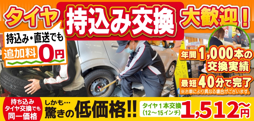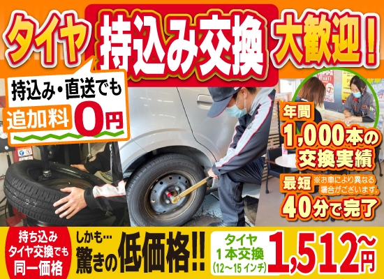 お任せ下さいませ! 当店では、多くのつくば・つくばみらい・谷田部・取手・土浦・守谷エリアのお客様からご要望を頂いたため、タイヤ持込み・交換も受付けております。