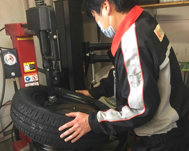 当店の国家整備士より、タイヤの交換作業をさせて頂きます。 |